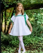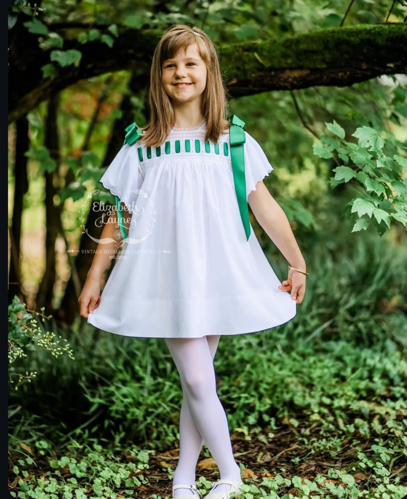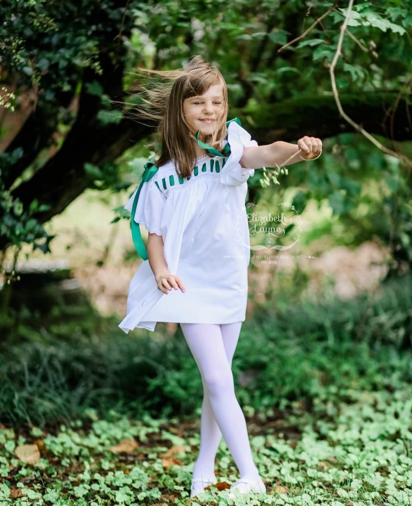 Model is 7 and is wearing a custom length of 27.5” long as we like dresses shorter.