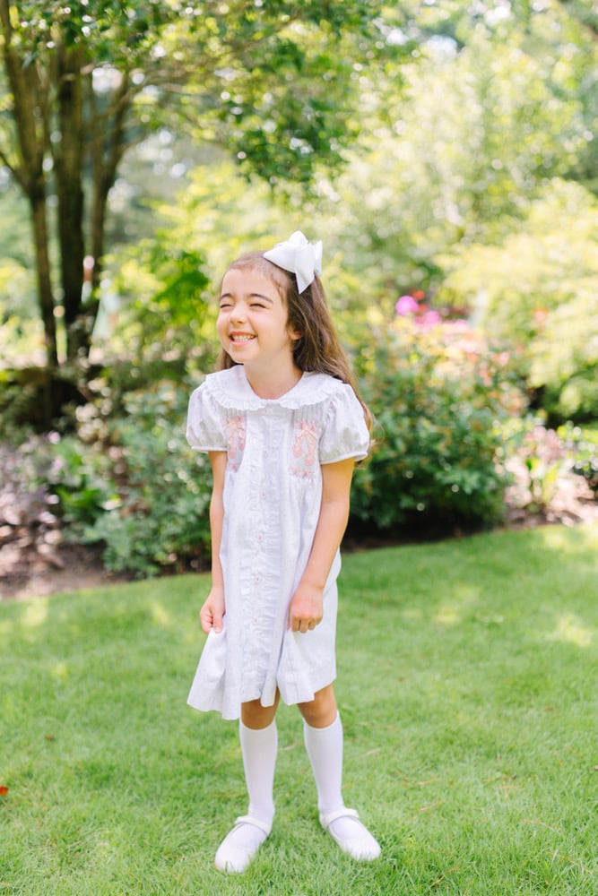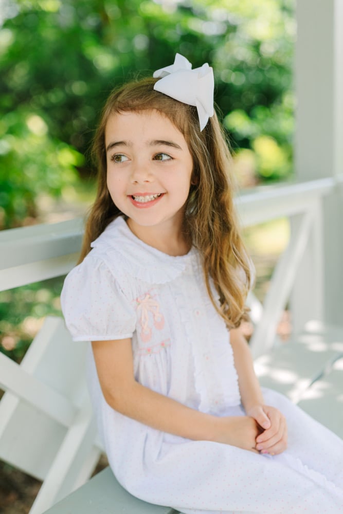We've carefully hand smocked each heirloom with precious pink ballet slippers and tied them up with real satin ribbons!