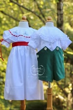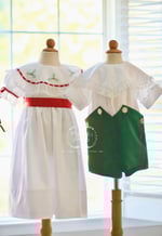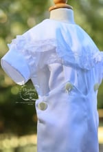 • Notice the v shape design throughout heirloom - on sides of collar on shoulders, on sleeve cuffs and on shorts - beautiful detailing!