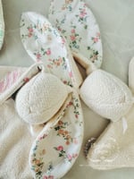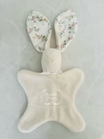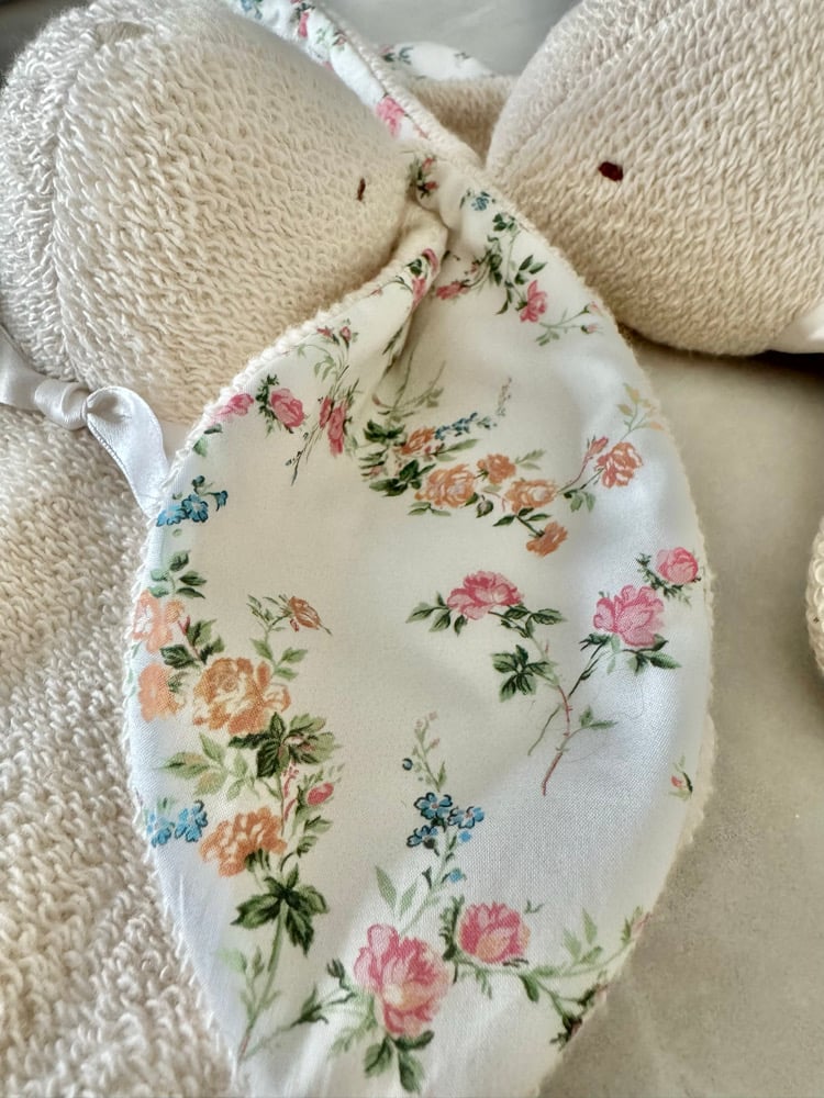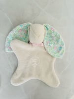 *If you choose to have your bunny personalized, one ear will be embroidered with a name or monogram in coordinating cotton floss (pink as pictured for the Liberty floral for girls, or powder mint to match the washed linen ears.
