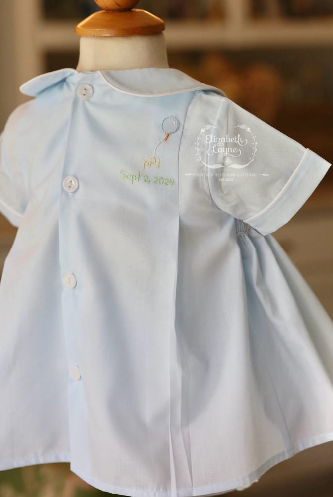 • Personalization on the back yoke - this is optional. If you would like it, please add your child's monogram in this order - with last name initial in middle (ex: mMr) and date (optional and will also be abbreviated with first three letters of month to allow room for everything if a month that has more then 5-6 letters) and we will include it with a sweet embroidered balloon