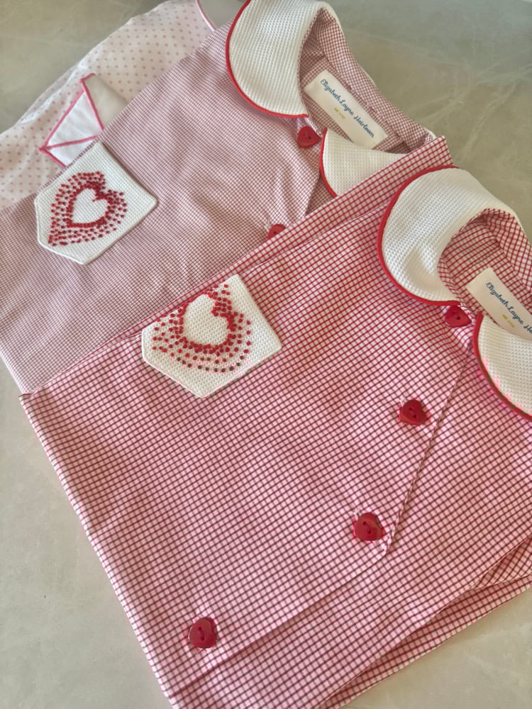 • Hand embroidered heart on pocket of apron dress