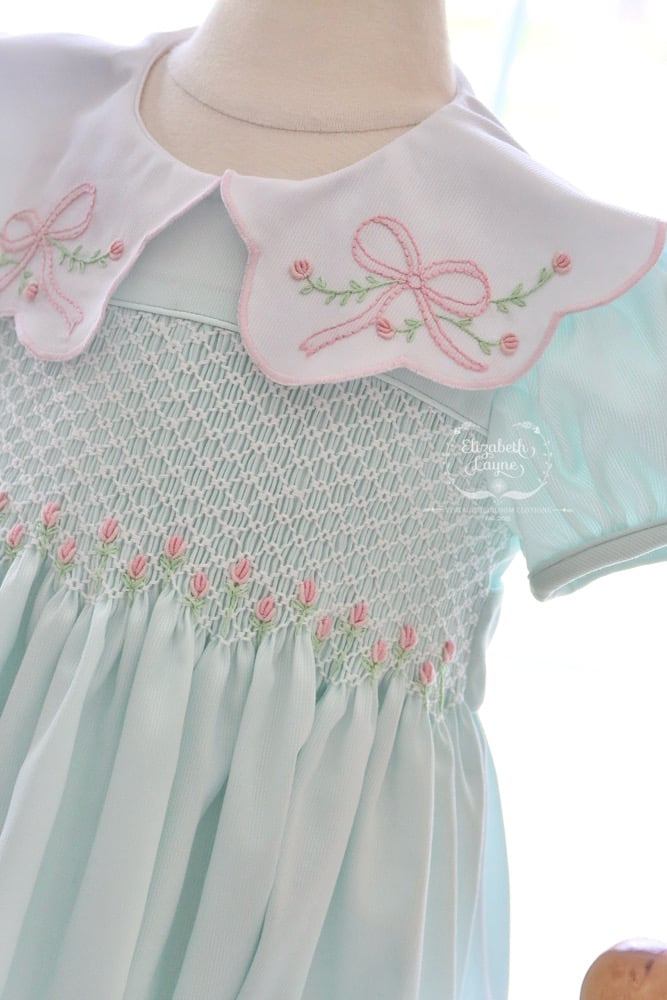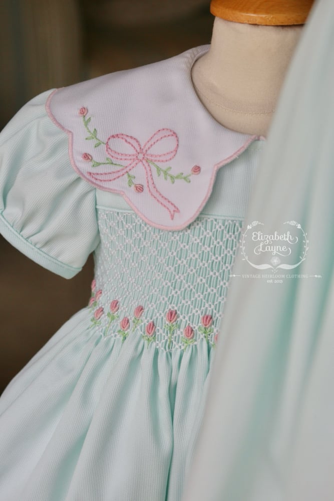 • Honeycomb smocking for a classic style we all love - lots of tiny tullip bullion florals blooming across the bottom of smocking