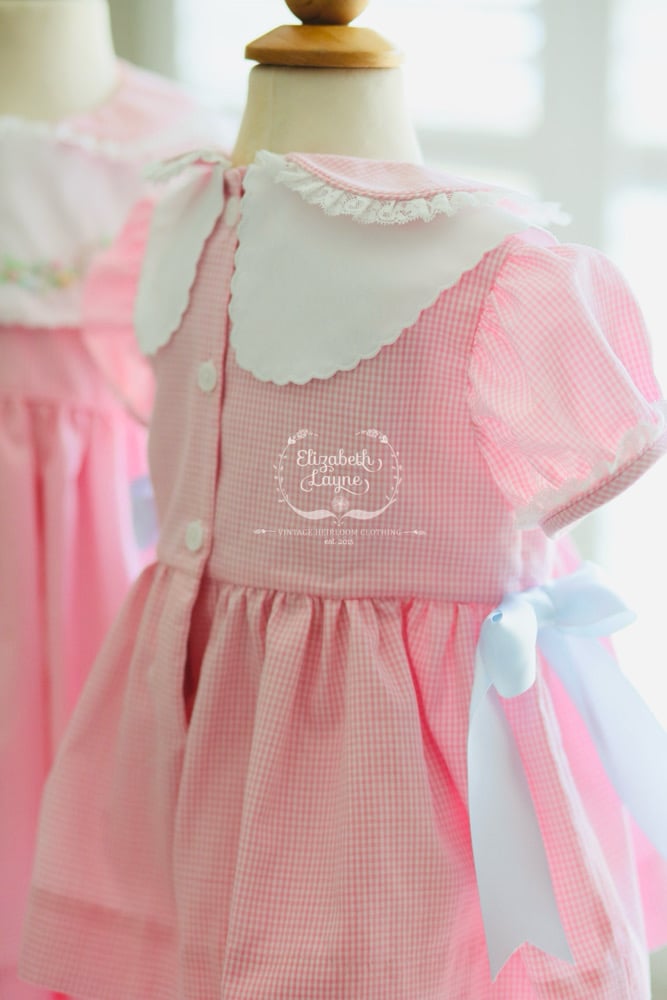 • Soft pink or blue poly/cotton gingham