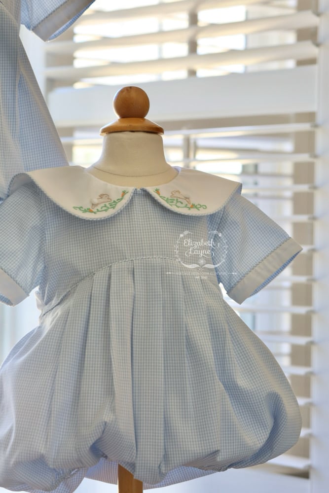 We have one size 2 girl’s bubble, one size 3 girl’s bloomer set and one size 2 boy’s bubble ready-to-ship!