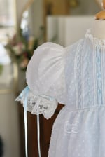 • Imported wide lace trim from the Netherlands on puff sleeves and hemline