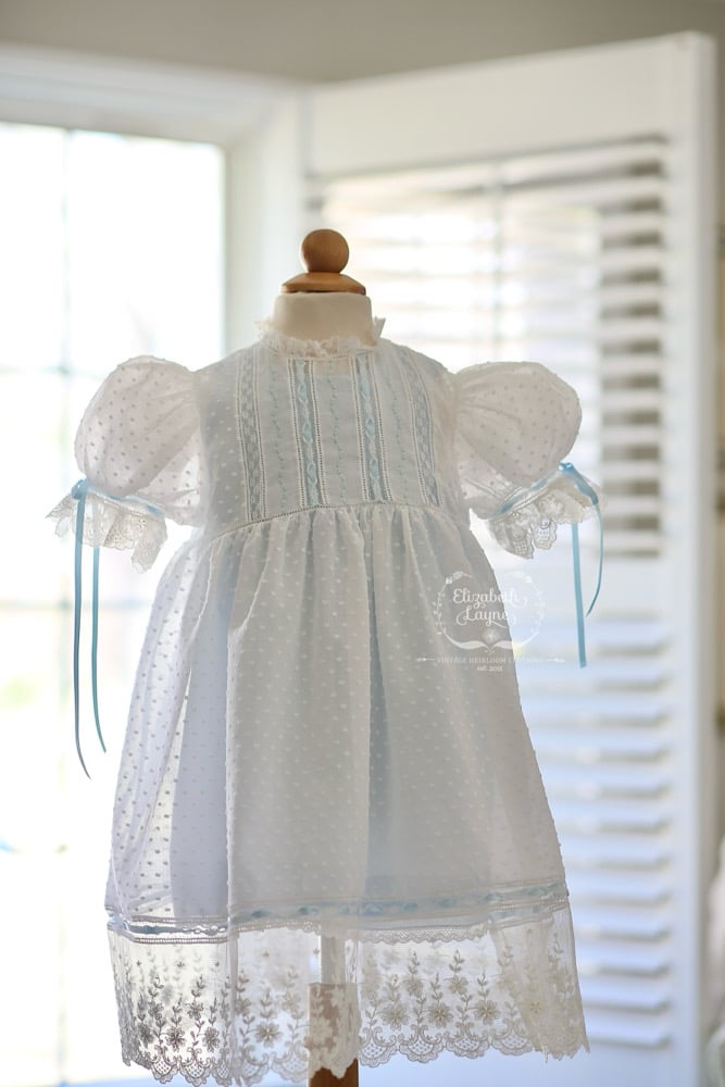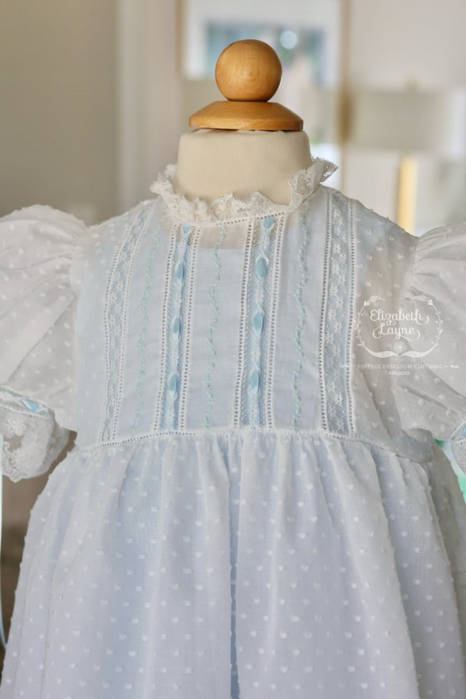 The Scarlett heirloom dress (or bubble) is a portrait heirloom that you can customize easily with Swiss embroidered trims and slip colors.