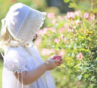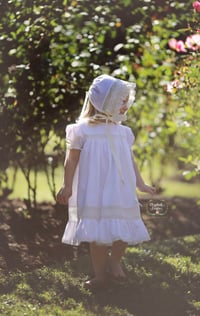 The Catherine Elise is constructed using batiste and features a pin tucked front and back bodice, lots and lots of French laces, Swiss embroideries and a handful of other details including: Mother-of-pearl buttons, an a-line slip and customized length.