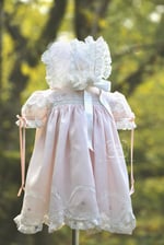 Created by hand using 100% cotton Swiss Nelona batiste, yards and yards of the prettiest white or ecru french lace insertions and the sweetest bit of hand embroidery added for a finishing touch.
